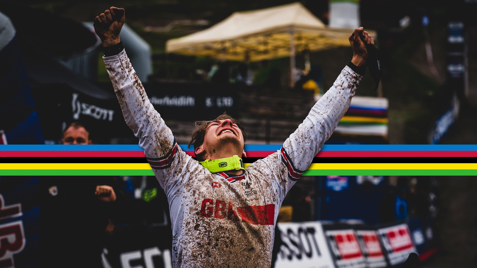 Trek Factory Racings Reece Wilson charged his way into the rainbow jersey aboard Session this year, taking all the right risks on a slick course and carving his name in Downhills history books with a truly gutsy run.